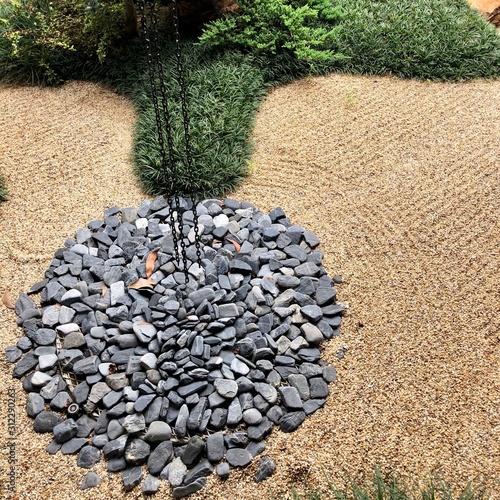 Gravel should be a subdued color to complement the quiet elegance of the japanese garden.